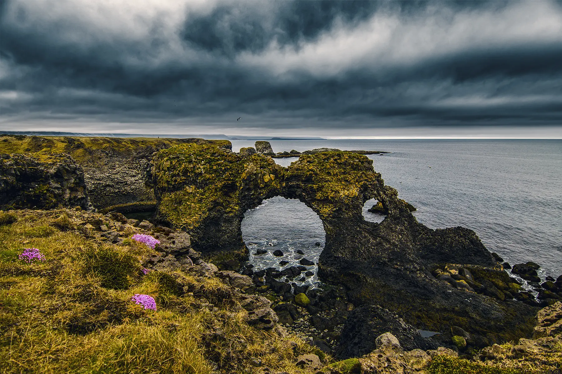 The dramatic coast of Arnarstapi is waiting for you next. Powerful waves are constantly eroding the cliffs and leaving impressive rock formations behind. We will also meet a statue of Bárður Snæfellsás, the guardian of the peninsula.